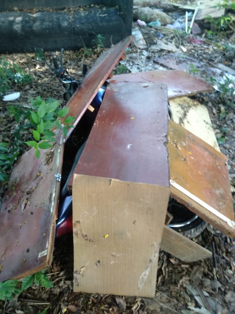 Durante averiguação no bairro Antônio Pereira Gaspar, por volta de 15:00h, os Policiais adentraram em uma zona de mata no final da Rua Pedro Coca Cuesta e no local obtiveram êxito em localizar a mesma escondida em baixo de placas de madeira.