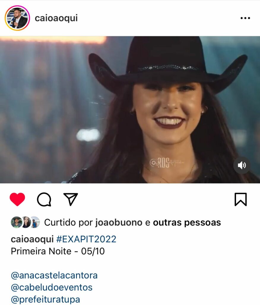 Depois do anúncio da realização da 51ª Exapit (Exposição Agropecuária e Industrial) dentro das comemorações de aniversário da cidade (93 anos), do dia 05 a 11 de outubro, o Prefeito Caio Aoqui anunciou que a cantora Ana Castela será a primeira a subir no palco da tradicional festa tupãense.