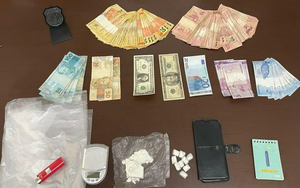 ‘Ainda na carteira do morador foi encontrado mais dinheiro, inclusive notas estrangeiras, como dólar e euro” destacou a autoridade responsável.