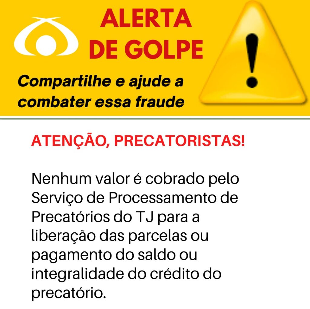 Saiba que o Tribunal de Justiça não solicita depósitos e nem adiantamentos de taxas, custas processuais ou impostos para o recebimento de valores.