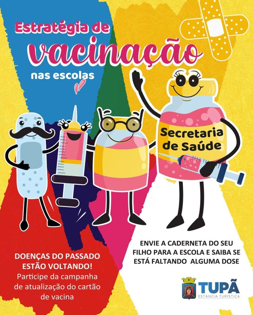 A Prefeitura de Tupã realizará a Estratégia de Vacinação nas Escolas, projeto do Ministério da Saúde criado com o objetivo de aumentar a cobertura vacinal das crianças e adolescentes e reduzir a incidência de doenças que podem ser prevenidas por meio da imunização.