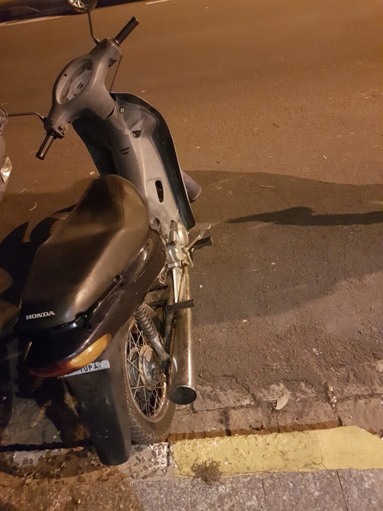 Atentamente diligenciando pelo local, na Rua Adelino Carlos Lourenço, foi visualizada a moto já estacionada. A mesma já estava sem placa, porém em consulta ao número do chassi foi confirmada a situação do veículo.