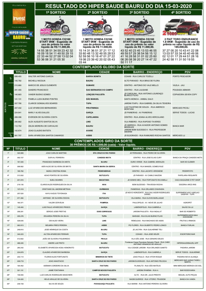 Um quarto ganhador comprou sua cartela em Tupã, porém ele reside em outra cidade.