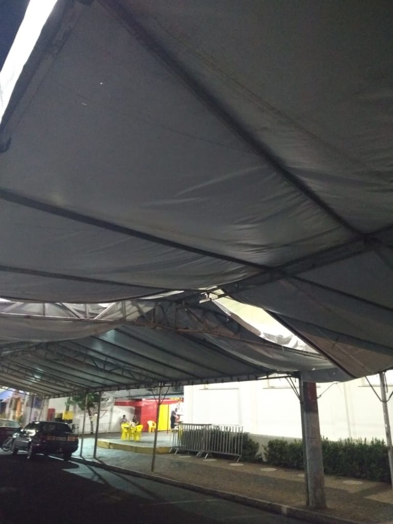Na noite de ontem, quarta-feira (15), segundo o relato de testemunhas um furgão de uma empresa da cidade trafegava pela avenida Tamoios em alta velocidade e colidiu contra a estrutura montada em frente da Caixa Econômica Federal.