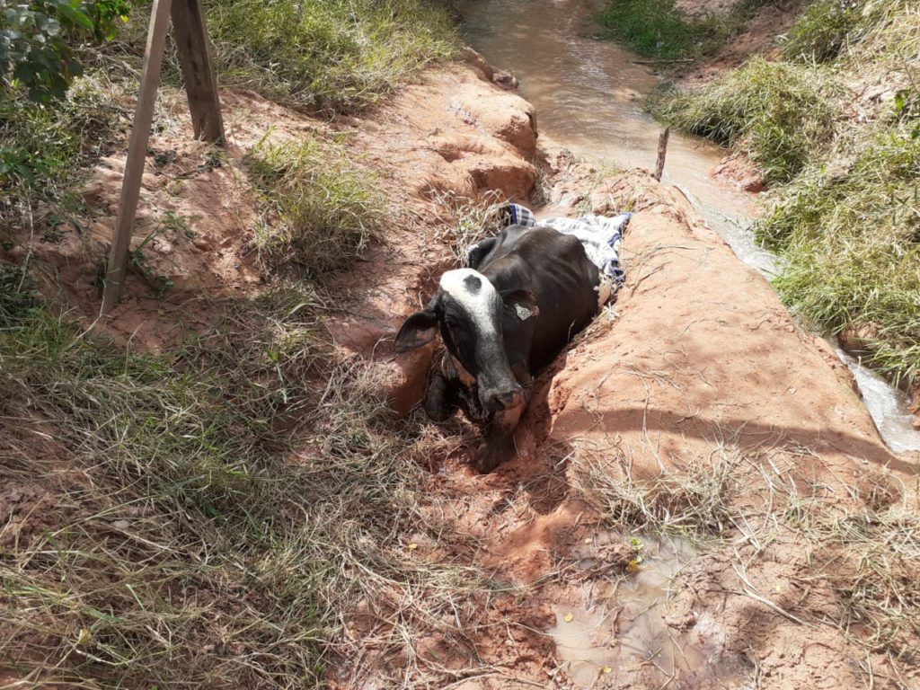 Nesta sexta-feira (14) às 13:30h, entrou uma ocorrência para o Corpo de Bombeiros, uma Vaca estava atolada em um córrego existente no bairro São Gonçalo em uma propriedade Rural.