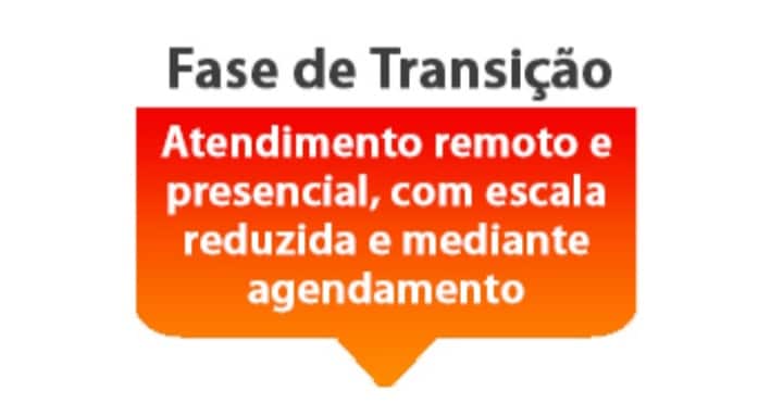 Unidades localizadas em cidades incluídas na Fase Vermelha do Plano SP realizam atendimento exclusivamente remoto. Unidades em municípios nas Fases Laranja e Amarela realizam atendimento remoto e também presencial, com escala reduzida e sempre com agendamento prévio.