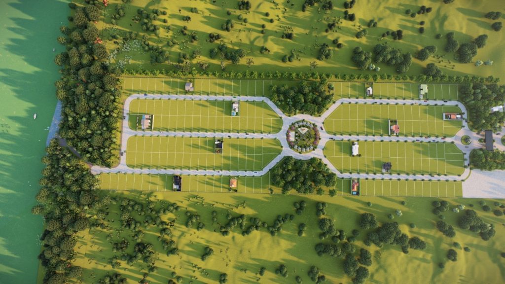 Todas as imagens e perspectiva são ilustrativas, sujeitas a alterações. O projeto irá seguir um cronograma de obras, com demarcação dos lotes, terraplanagem, galerias, rede de abastecimento de água, guias de sarjeta, arruamento, energia elétrica, arborização e urbanização, e as documentações estão sendo devidamente registradas junto ao Cartório responsável.