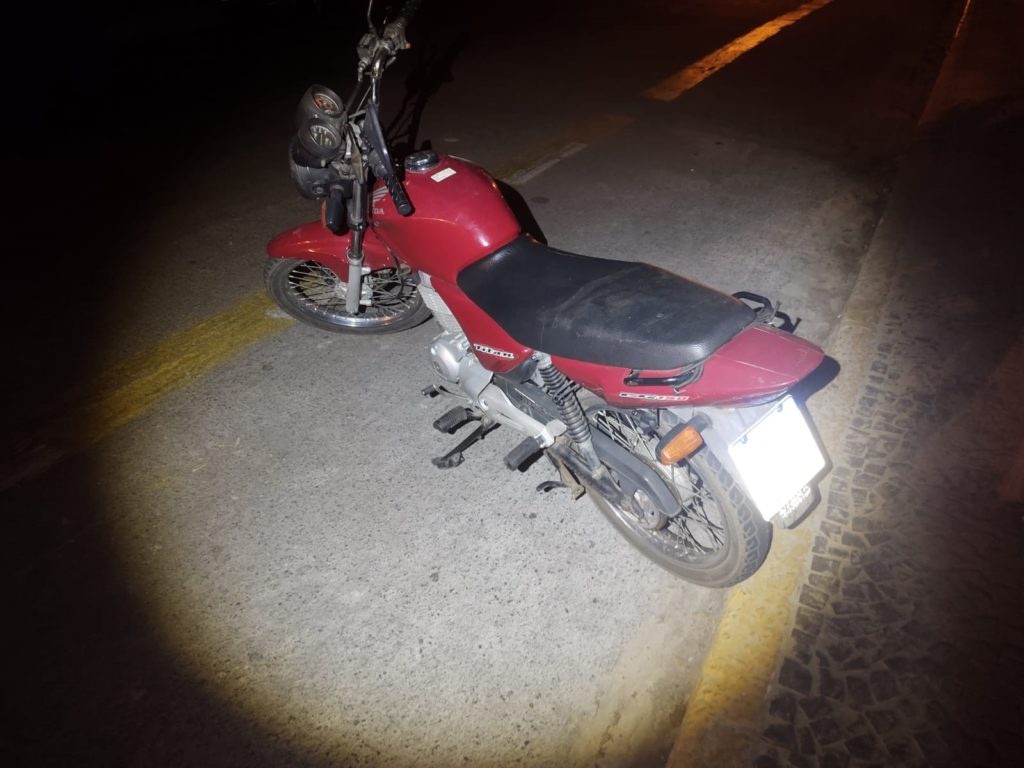 Neste sábado (14) a Polícia Militar estava em patrulhamento quando recebeu uma ligação relatando o furto de uma moto Honda CG150 Titan Vermelha que estava estacionada em frente a um bar.