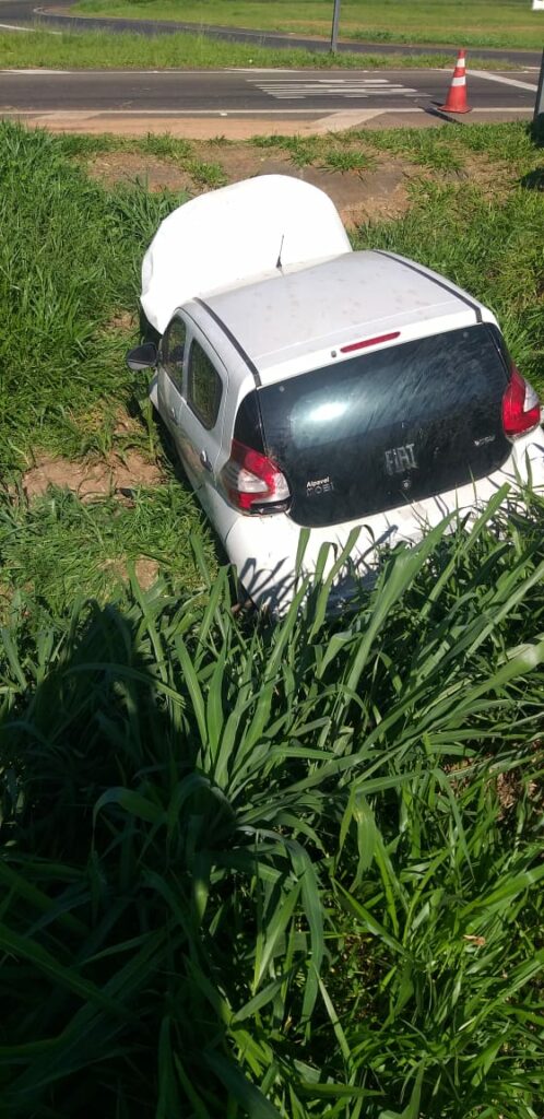 O Condutor de um Fiat/Mobi com placas de Tupã, trafegava sentido Quintana x Tupã quando perdeu o controle da direção do veículo e caiu em um buraco, ele não ficou ferido.