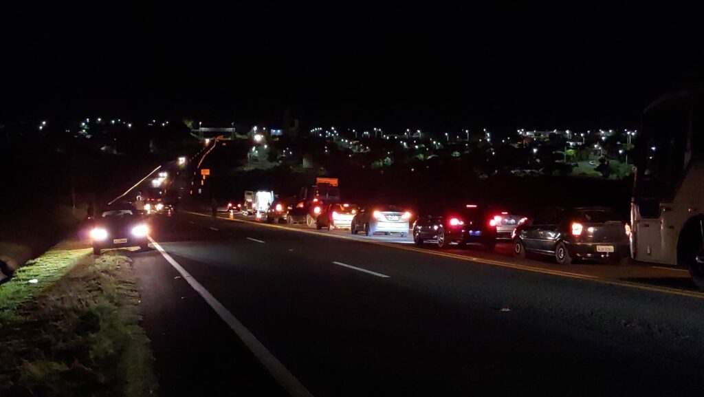 O tráfego de veículos acabou ficando interrompido nos dois sentidos até que as vítimas fossem retiradas do local, mas já foi liberado.