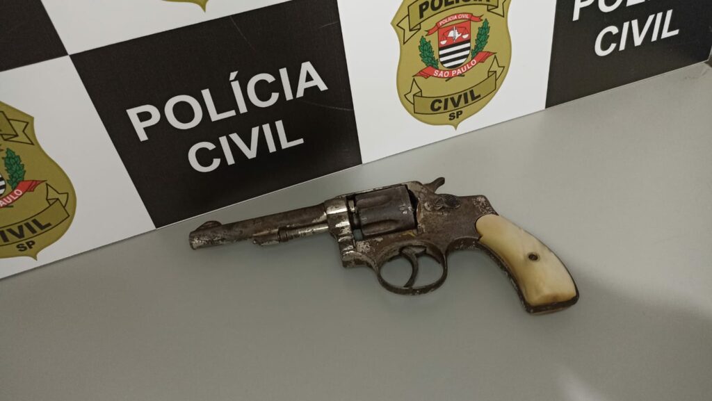 O adolescente de 14 anos de idade foi identificado e os Policiais se deslocaram para a residência do mesmo, onde localizaram um revólver calibre 32 em mal estado de conservação, desmuniciado.