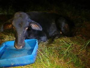 De acordo com informações divulgadas, uma vaca havia caído em um poço desativado com cerca de 8 metros de profundidade. Para atender a essa demanda, a equipe enviou a viatura de salvamento ABS-10110 para o local.