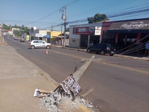 Por volta das 10h desta quinta-feira (1°) um caminhão derrubou um poste de energia elétrica na rua Marília, em Tupã.