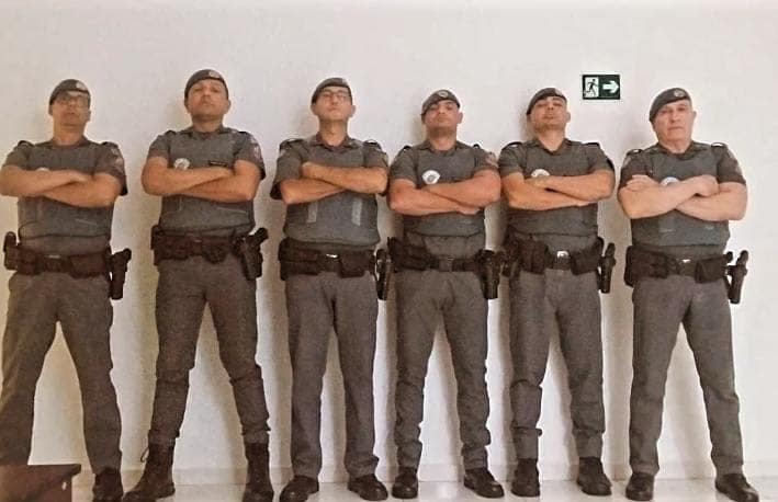 Equipe de Atendimento: Cabo Luciano, Cabo Santos, Subtenente Félix, Cabo Pacheco, Cabo Soares e Soldado James.