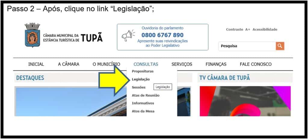 O cidadão de Tupã pode acessar a Lei Orgânica através da página inicial da Câmara da seguinte forma: