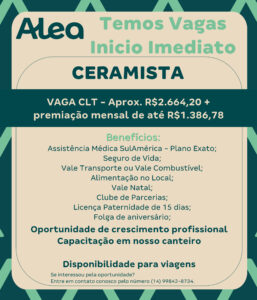Interessados podem obter mais informações pelo WhatsApp (14) 99842-8734. Não perca essa oportunidade de trabalho com salários competitivos e amplos benefícios em Tupã.