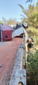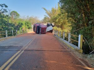 A vicinal que liga Tupã a Quatá está completamente interditada desde a madrugada desta terça-feira (30), após o tombamento de uma carreta na ponte sobre o Rio do Peixe.
