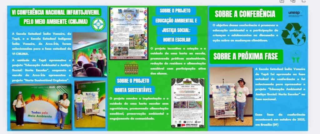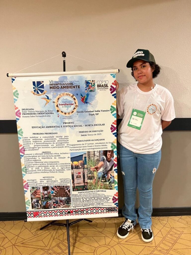 A conferência tem como objetivo promover a educação ambiental e estimular a participação de crianças e adolescentes nos debates sobre sustentabilidade e mudanças climáticas. A aprovação do projeto da unidade de Tupã para a etapa nacional é fruto do trabalho coletivo do time escolar, professores e da dedicação de Ester Vitória Marques.