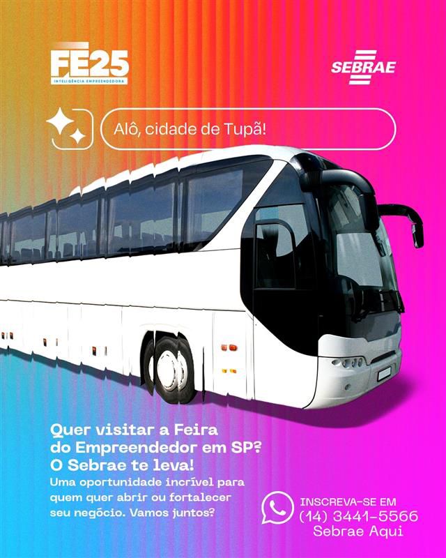 Os interessados em tomar parte na viagem ainda podem fazer a inscrição diretamente no Sebrae Aqui (Guaianazes, 70, na Praça da Bandeira) ou através do whatsapp (14) 3441 5566. De segunda a sexta-feira, das 7h30 às 11h e das 13h às 16h40.