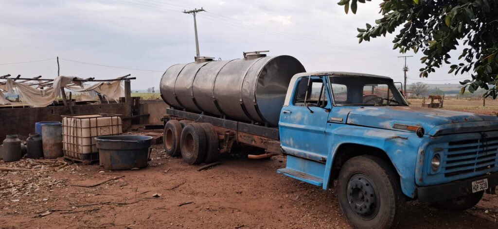 Durante as vistorias, foram recolhidos 200 litros de leite em uma propriedade rural do município de Platina para análise posterior.