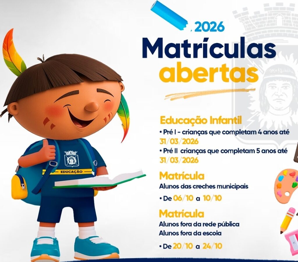 A Secretaria de Educação vai abrir no próximo dia 06 as matrículas para a pré-escola. São duas faixas: Pré I, para crianças que completam 4 anos até 31 de março de 2026 e Pré II, para os alunos que fazem 5 anos até a mesma data.