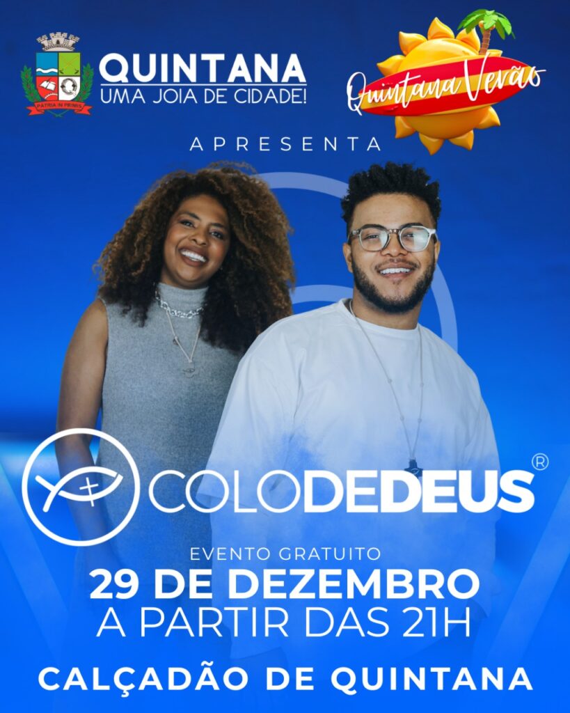 Durante o encerramento, o prefeito anunciou uma atração especial para o fim do ano: o show da banda Colo de Deus, marcado para o dia 29 de dezembro, no Calçadão de Quintana. O evento deve atrair público de toda a região e promete encerrar 2025 com uma grande celebração de fé e esperança.