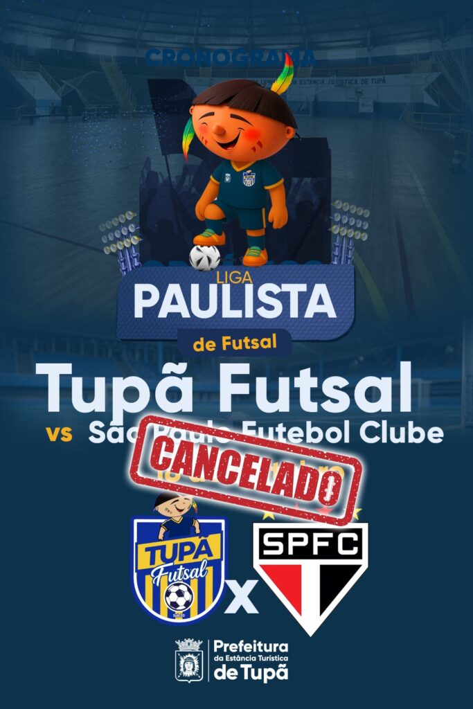 O confronto esperado entre Tupã Futsal e São Paulo Futebol Clube, programado para este sábado (18), foi cancelado após desistência do time paulistano.