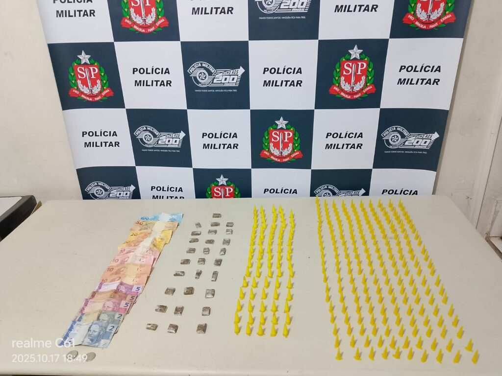Ao revirar o local indicado, a Polícia Militar encontrou uma quantidade significativa de drogas: 211 microtubos de crack, 79 microtubos de cocaína, 28 porções de maconha e R$ 250 em notas diversas.