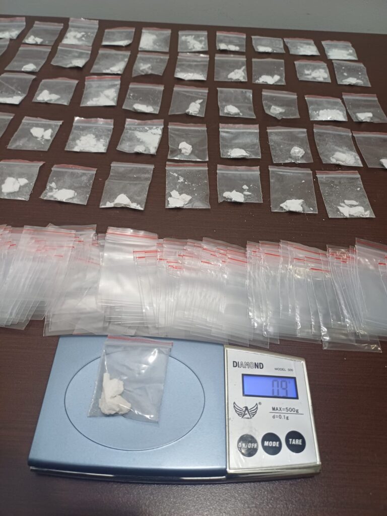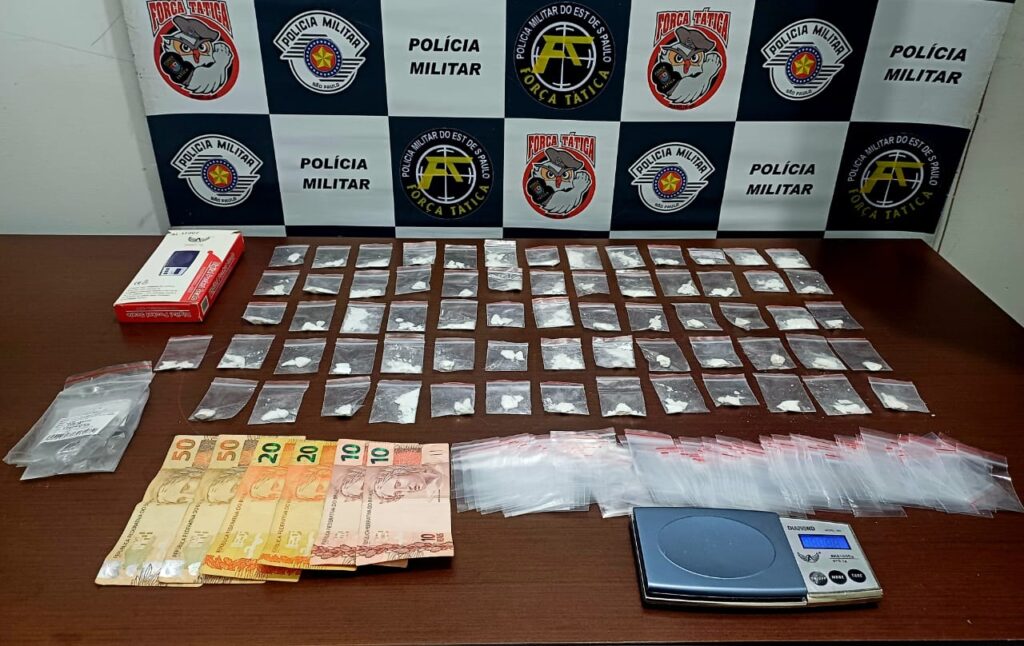 No cesto de lixo, foram apreendidas 66 embalagens do tipo “zip lock” contendo substância semelhante à cocaína, além de diversas embalagens vazias. No quarto, sobre a cama, estava uma balança de precisão e R$160 em notas fracionadas, bem característico do movimento do tráfico de entorpecentes.
