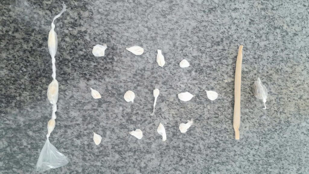 Os policiais realizaram a abordagem e encontraram com o suspeito 16 porções de crack embaladas para venda, além de um cigarro e uma porção de maconha.