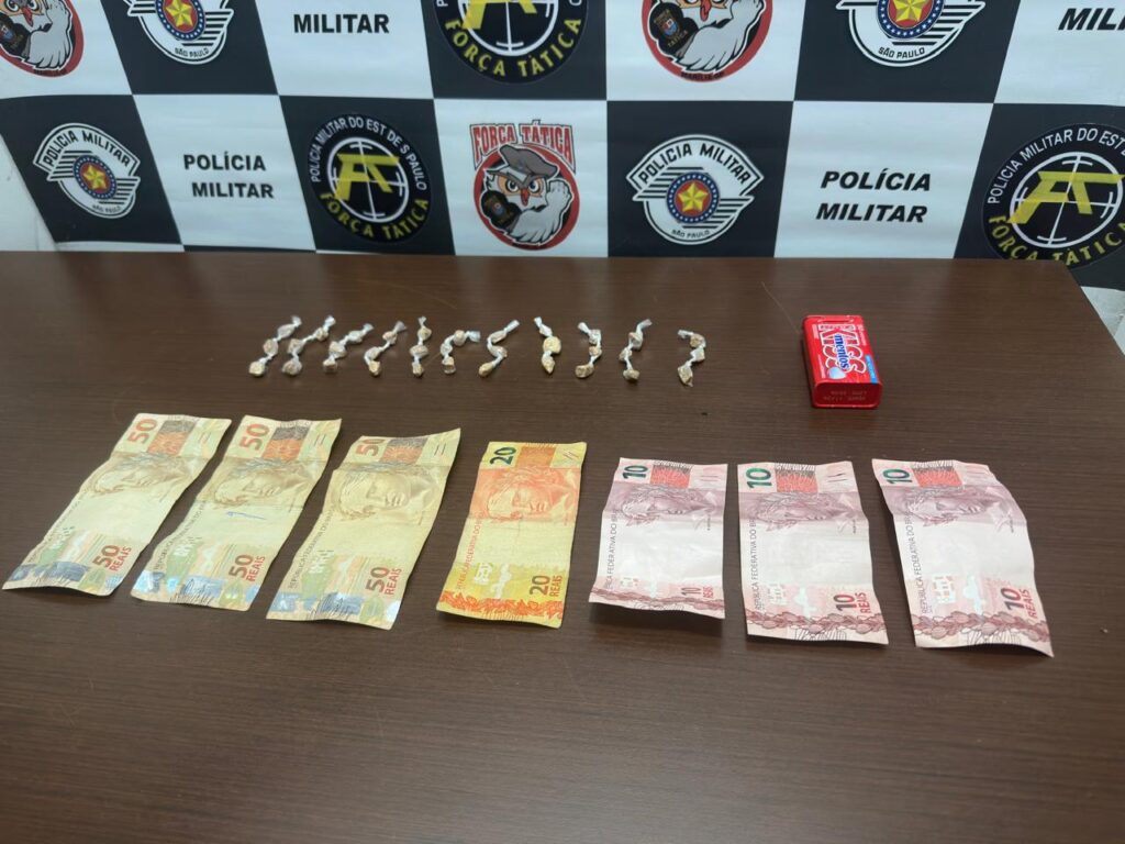 Os policiais realizaram um acompanhamento por várias ruas até abordá-lo na Rua Evaristo Quinquio. Na revista pessoal, foram encontrados R$ 200 em dinheiro e 33 porções de crack embaladas para venda.