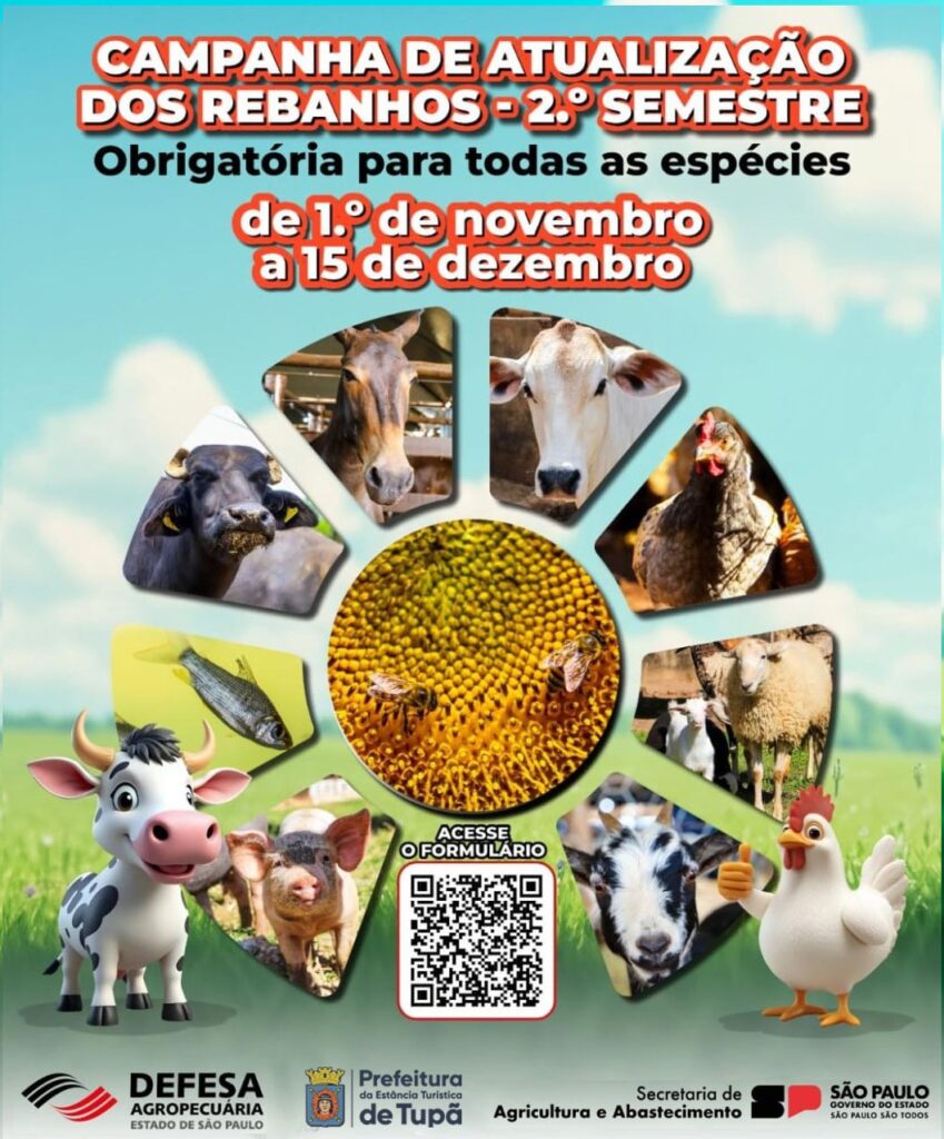 A Defesa Agropecuária da Secretaria de Agricultura e Abastecimento (SAA) informa que os proprietários devem declarar todas as espécies presentes em suas propriedades até o dia 15 de dezembro.