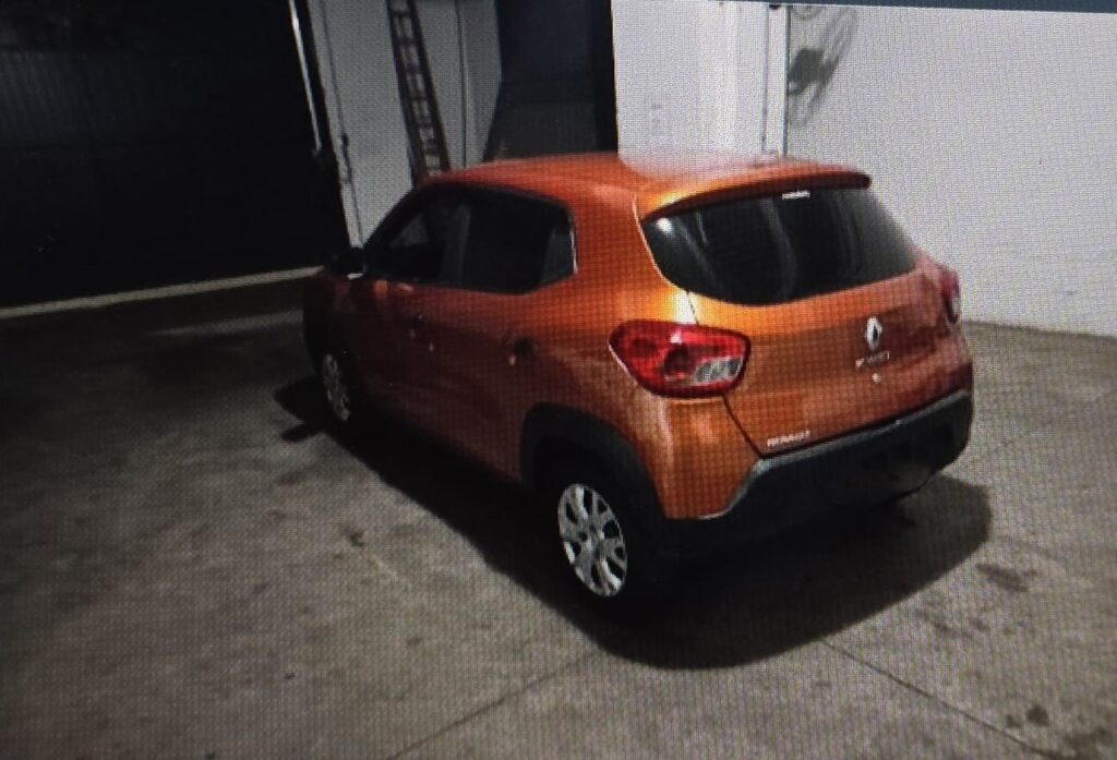Durante o patrulhamento, os policiais visualizaram um veículo Renault KWID laranja estacionado naquele ponto, com os vidros totalmente escuros.