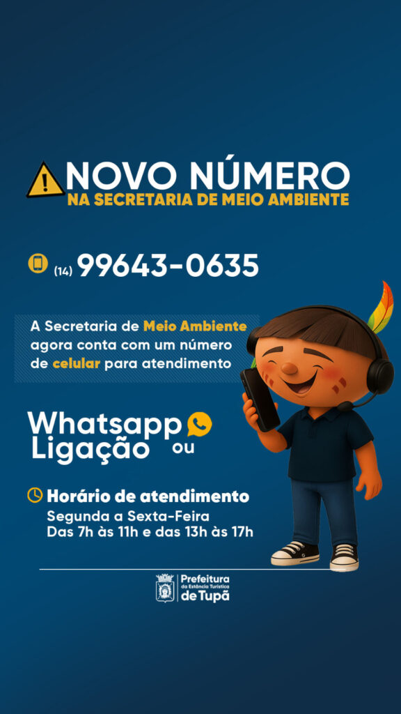 A Secretaria de Meio Ambiente alterou o número de seu telefone de atendimento. Agora, a população deve ligar ou enviar whatsapp para (14) 99643-0635 para solicitar informações sobre os serviços prestados pela pasta.
