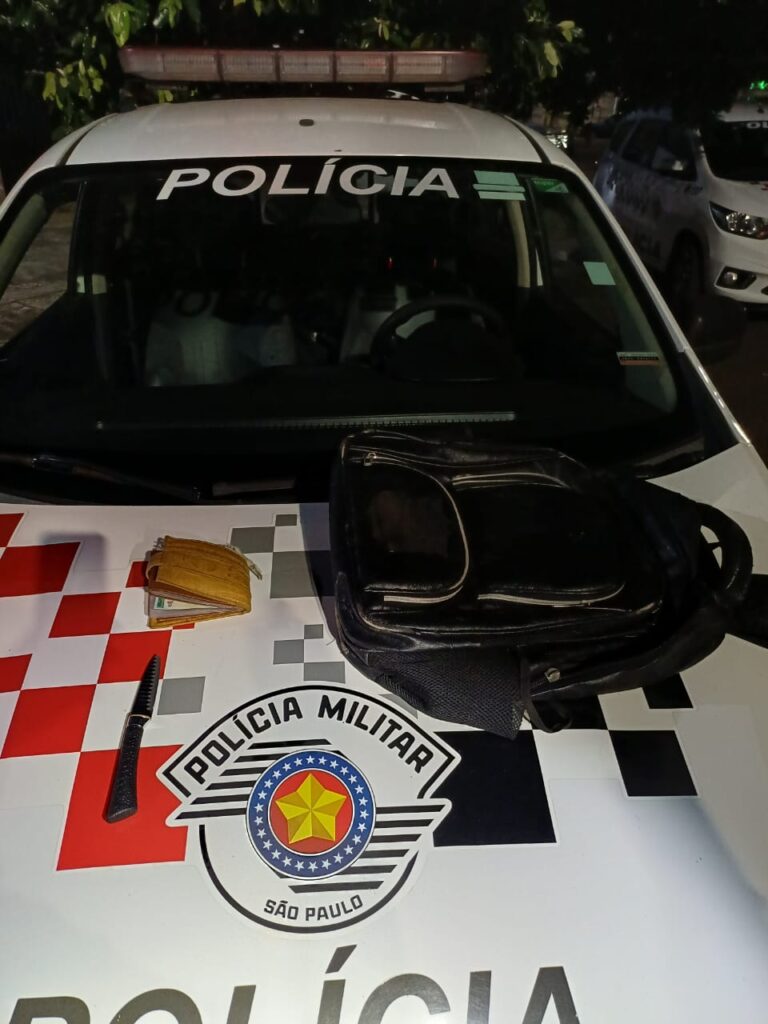 Durante a abordagem, os policiais encontraram uma faca e pertences do autor no veículo.