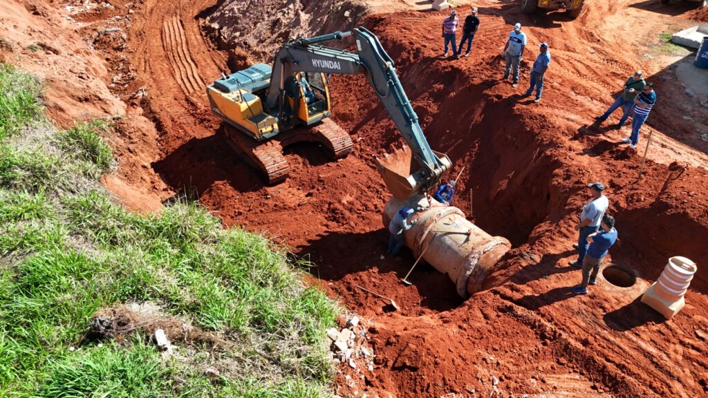 O serviço inclui a substituição da rede de galerias pluviais, com a instalação de tubulação de 150 centímetros de diâmetro prevista para esta semana.