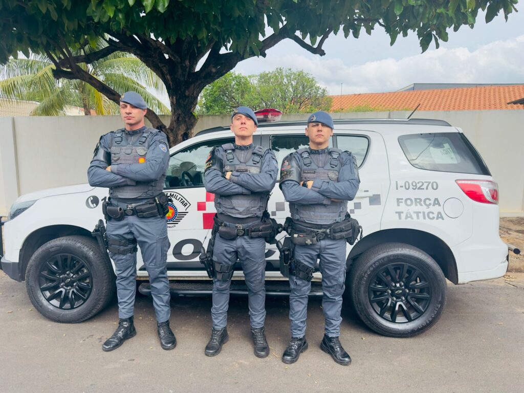 Conduziram a ação os Policiais Militares 1° Sargento Fantes, Cabo Alan e Soldado Mariotti, da Força Tática.