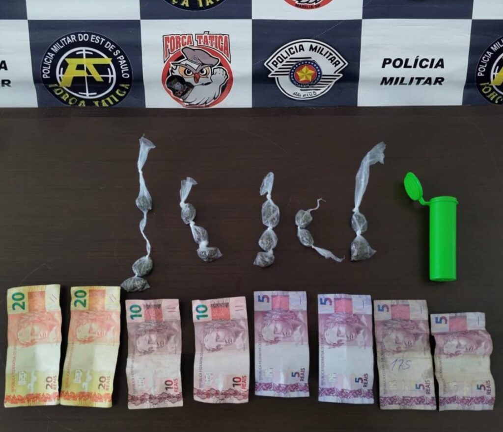 A jovem levava um pote laranja contendo 13 porções de maconha e R$15, localizados na busca pessoal. Aos policiais, a menor admitiu que estava comercializando drogas para “comprar o que comer e bancar seus luxos”.