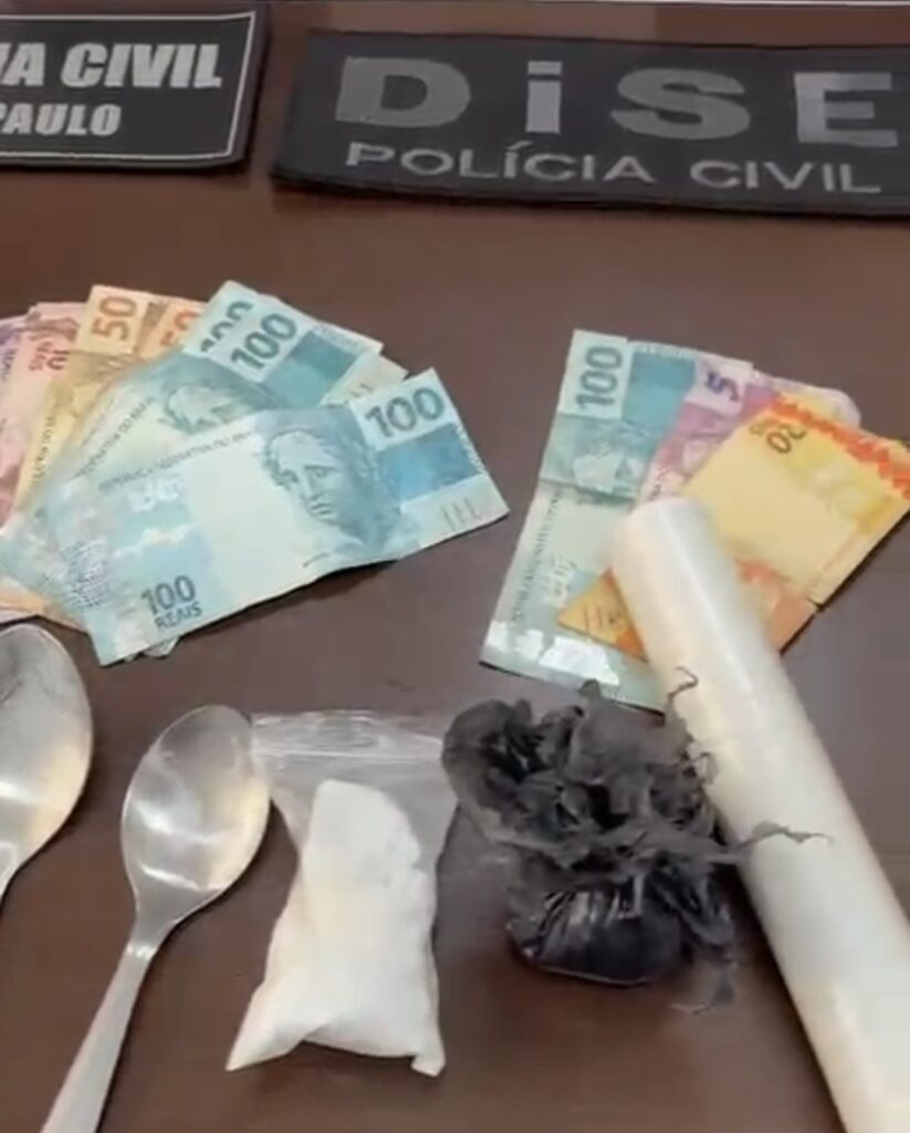 Durante as diligências, os policiais civis localizaram porções de cocaína a granel, além de balança de precisão, colheres com resquícios da droga, plástico filme usado para embalo e dinheiro, valores encontrados em diferentes cômodos da residência.