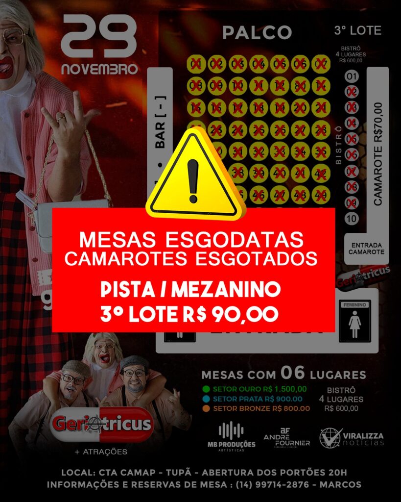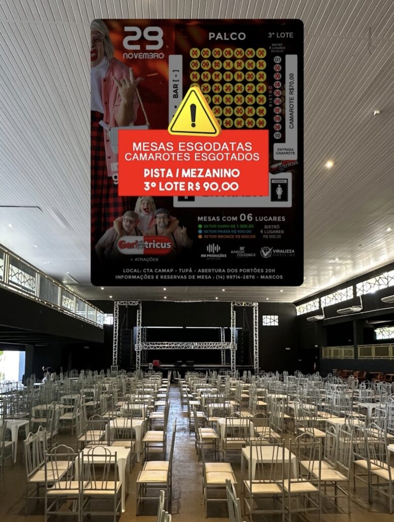 E o público reconheceu isso rapidamente, 100% das mesas já foram vendidas, os camarotes estão esgotados, e restam pouquíssimos bistrôs disponíveis. Já a pista e o mezanino estão no terceiro lote, custando R$ 90, e a procura segue intensa.