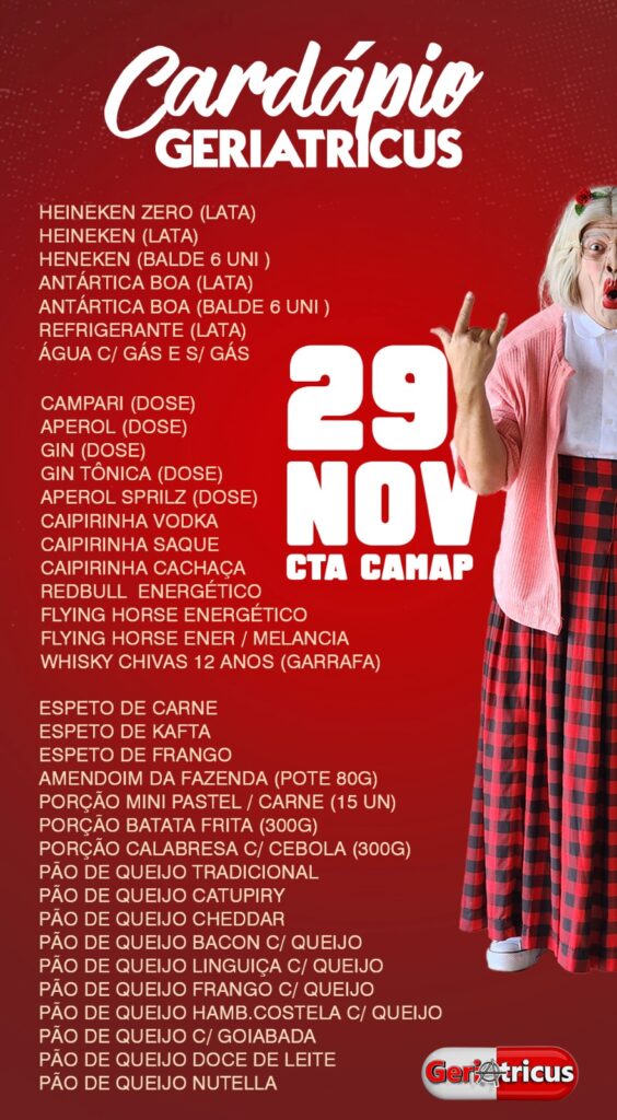 O show mais aguardado de novembro em Tupã está chegando e promete uma das noites mais animadas do ano. A banda Geriatricus sobe ao palco no próximo dia 29 de novembro, no CTA da Camap, em uma apresentação que já está movimentando toda a cidade.
