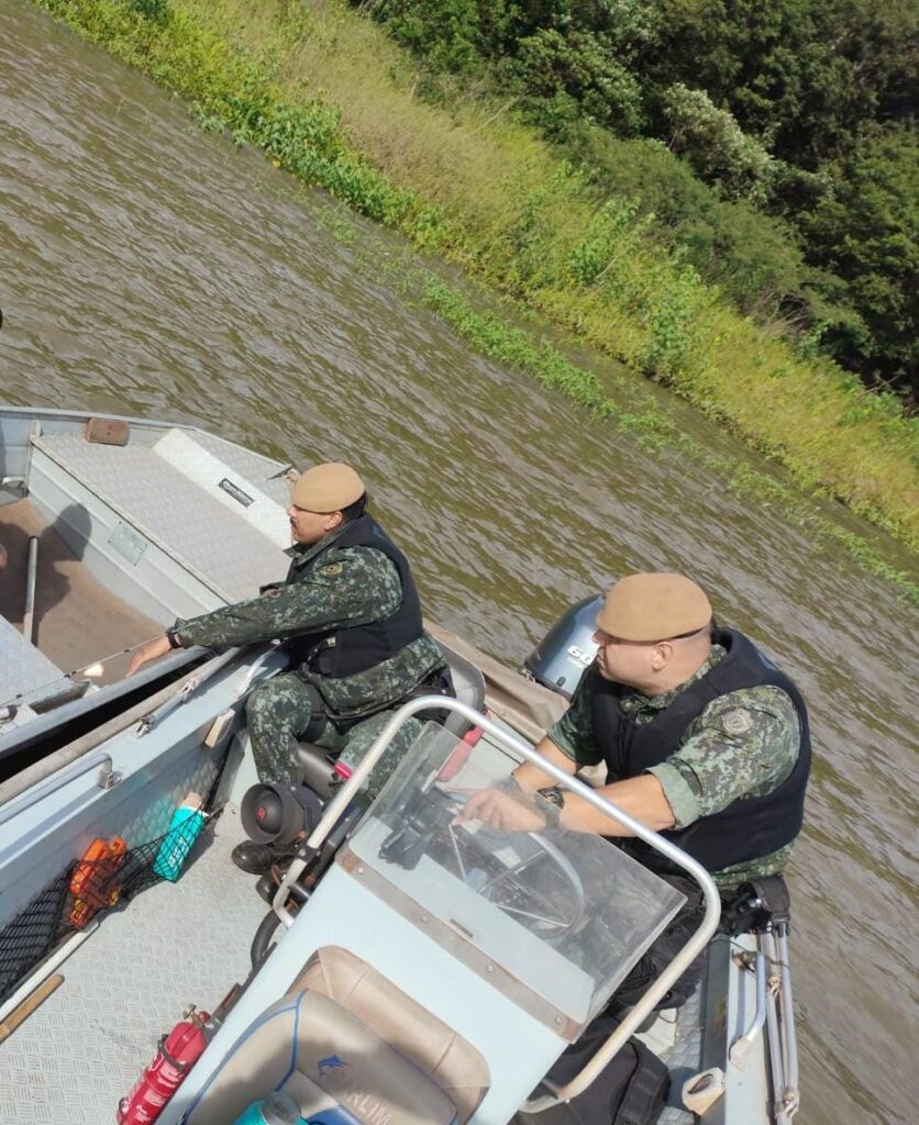 A equipe náutica da embarcação formada pelo 1º Sargento Douglas, Cabo Sabino e Cabo Gabriel, realizava patrulhamento de rotina quando abordou uma embarcação ocupada por apenas um pescador. O apoio terrestre foi feito pelo Cabo Miranda.
