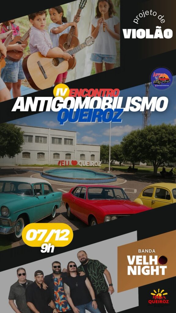 No domingo, 07 de dezembro, as atividades começam às 9h, também na Praça Central, com apresentação do Projeto Violão. No mesmo horário, ocorre o XI Encontro de Antigomobilismo de Queiroz, que contará com a animação da Banda Velho Night.