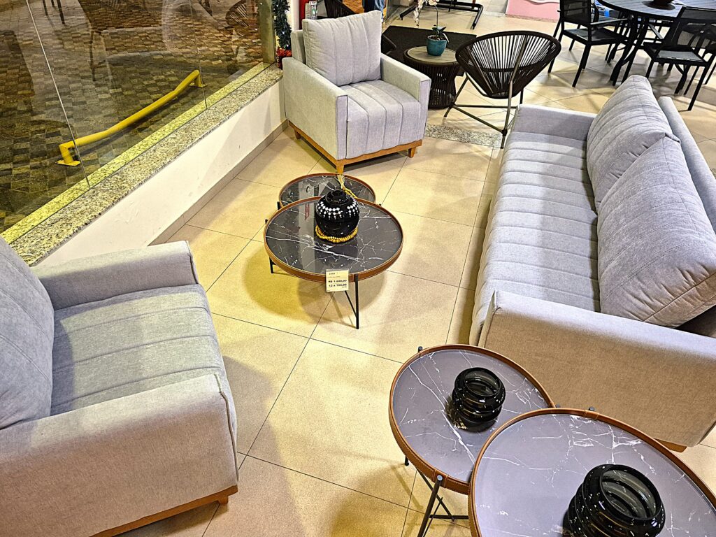 Entre os destaques que ganham atenção especial no espaço, está o Estofado Living Líbano com duas poltronas, uma composição elegante e acolhedora, ideal para salas amplas e projetos que valorizam conforto sem abrir mão do visual sofisticado. O conjunto se integra perfeitamente a diferentes propostas de decoração, criando um ambiente convidativo para receber a família e os amigos.