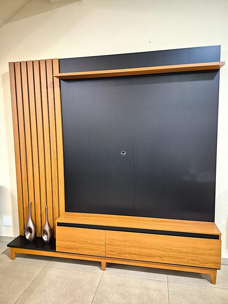Outro destaque é o Painel Jacarta, com 2,17 metros, que alia design moderno e acabamento refinado, valorizando a sala de estar e proporcionando organização e beleza para o espaço de TV.