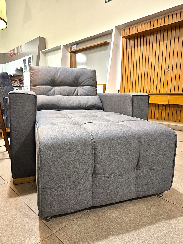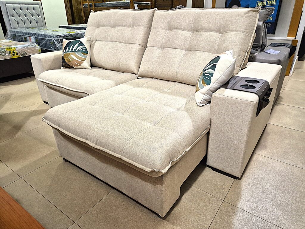 O conforto absoluto também está presente no Estofado Riviera, retrátil, com 2,50 metros, pensado para quem valoriza amplitude, maciez e presença marcante na sala.