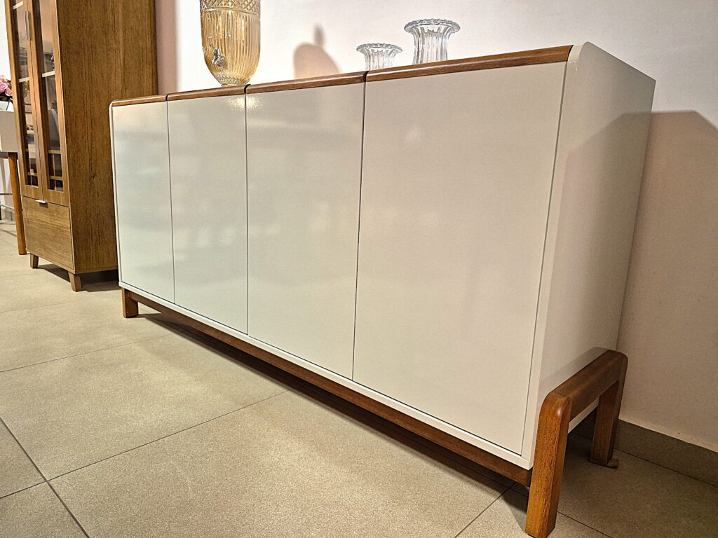 Complementando o ambiente, o Buffet Elegance II, apresentado em destaque com o Espelho Aqua, reforça a proposta de um espaço sofisticado, organizado e visualmente marcante.
