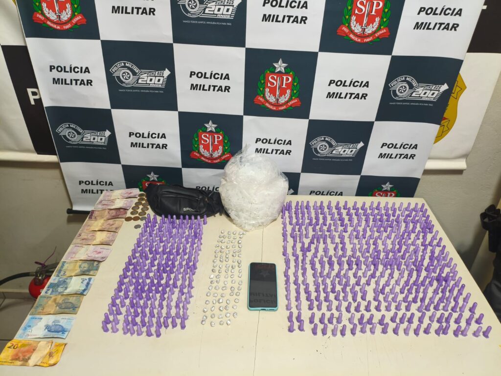 Durante a revista pessoal, com o homem de 25 anos foi encontrada uma pochete preta contendo 177 eppendorfs de cocaína e a quantia de R$ 69,10 em dinheiro. Já com o jovem de 23 anos, os policiais localizaram 84 invólucros de crack, 360 microtubos de cocaína, um aparelho celular e um pacote com aproximadamente mil microtubos vazios, prontos para serem utilizados no preparo e embalagem de drogas.