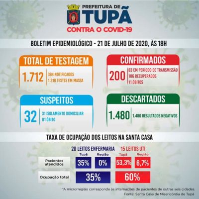 Nota Oficial – Mais um paciente da Casa Emanuel morre por coronavírus (22/07) A Prefeitura de Tupã lamenta o registro de mais um óbito por coronavírus, registrado nesta quarta-feira (22/07). A vítima, uma mulher de 65 anos, também era atendida pelo asilo Casa Emanuel. Com o novo óbito sobe para 12 o número de pessoas […]