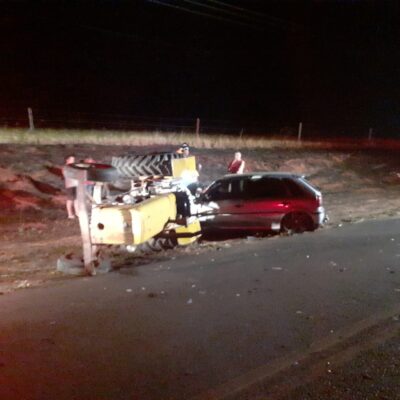 Gol colide na traseira de trator na vicinal Bastos X Iacri